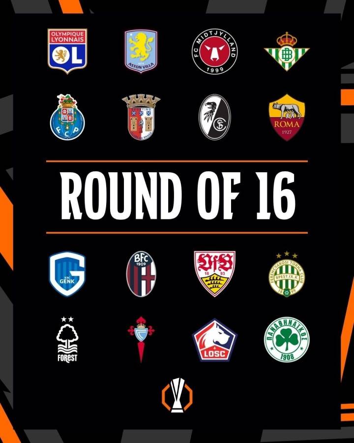 直通欧联杯16强的8队(种子队):里昂、阿斯顿维拉、中日德兰、皇家贝蒂斯、波尔图、布拉加、弗赖堡、罗马。